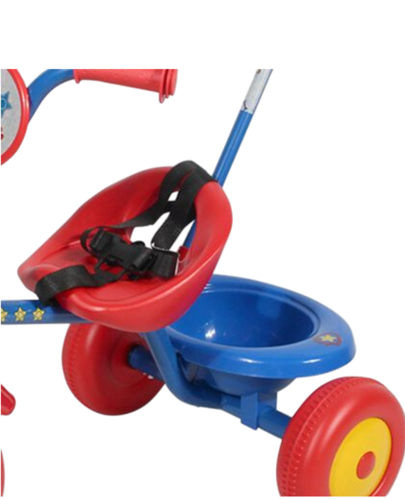 - Manija de Empuje (Parental): Posee una manija trasera con agarre amarillo para que los padres puedan guiar y controlar la dirección del triciclo durante el aprendizaje.