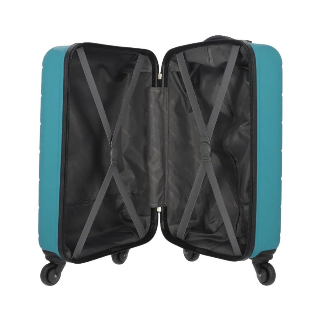 - Exterior: Sistema multidireccional de cuatro ruedas. Carro con botón liberador. Bolsillos frontales que añaden capacidad. Tiradores metálicos con logotipo.