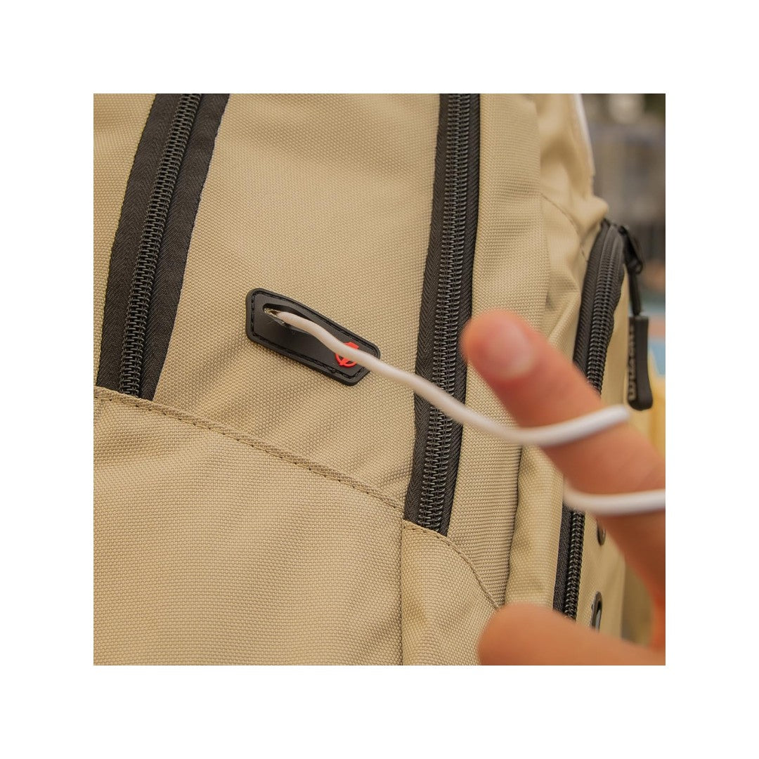 Conectividad Integrada: Cuenta con un pasacables lateral, diseñado para que puedas conectar tus audífonos o un power bank mientras mantienes tus dispositivos protegidos dentro de la mochila.