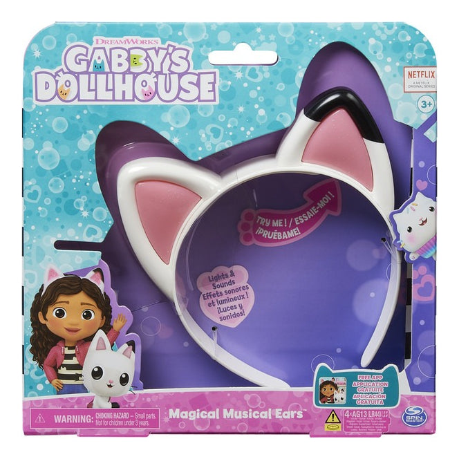 - Las Orejas Mágicas Musicales hacen realidad las características orejas de gato de Gabby del programa, tiene más de 10 sonidos, frases y canciones del programa. Las Orejas Mágicas Musicales se iluminan. Con 3 modos de juego, podrás divertirte mucho con tus propias orejas de gato de Gabby. Pellizca la oreja izquierda para oír frases de Gabby, pellizca la derecha para escuchar música y sonidos. Pellizca ambas para los maullidos.