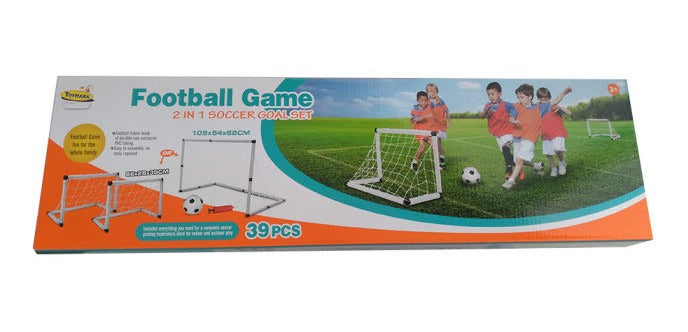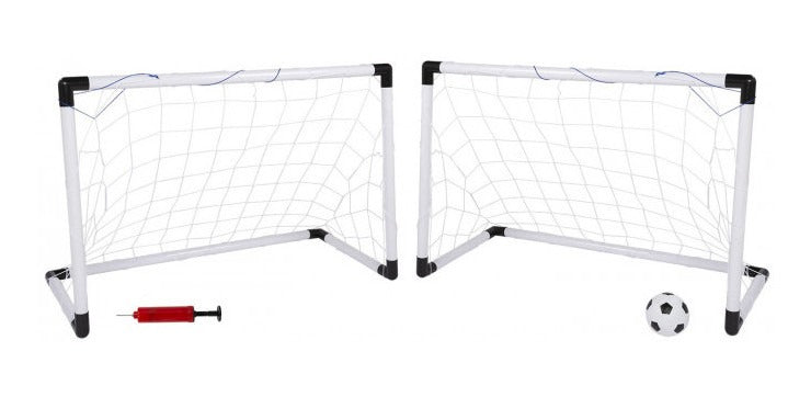 - 2 Portería de Fútbol Soccer.Portería 2en1 Infantil Niños Balón Red Bomba de Aire Practicas portería infantil, fácil transportar y armado Puede armarse en 1 portería grande o 2 Pequeñas Agarres clavables para fijar la portería en pasto Puede instalarse en cualquier superficie plana Material plástico, duradero, Libre BPA Incluye: 1 Portería armable 1 Balón de hule 1 Bomba de aire (para inflar balón manualmente) 3 redes (1 Grande, 2 Pequeñas) 4 Agarres para pasto Balón inflable mide 13 cm diámetro